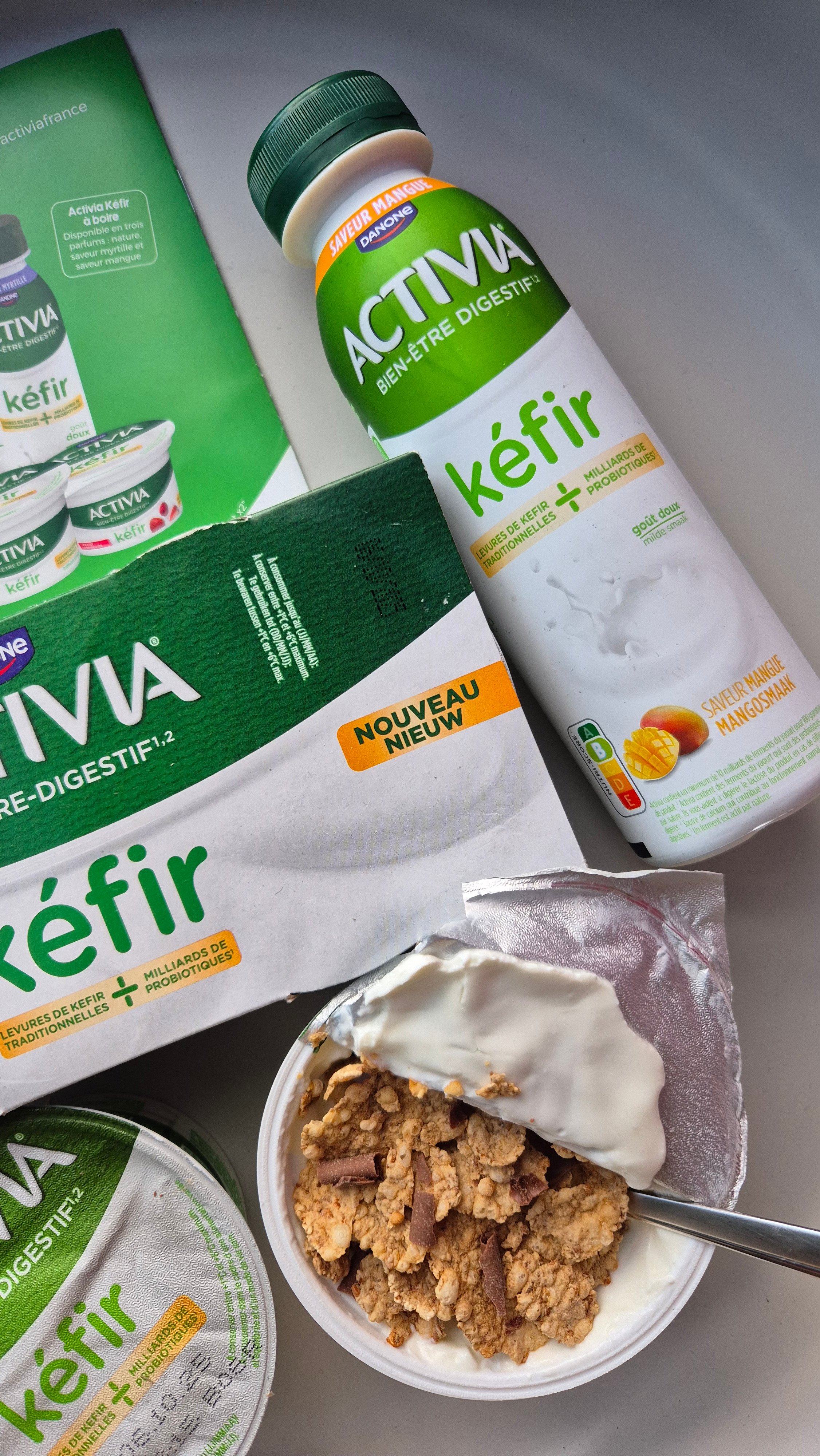 Belle découverte de ces produits Kéfir de Danone, j'ai testé le Kéfir à boire nature, délicieux et authentique et le Kéfir à boire goût mangue, un vrai régal. Les Kéfir en pot sont une bonne solution pour bien démarrer la journée.