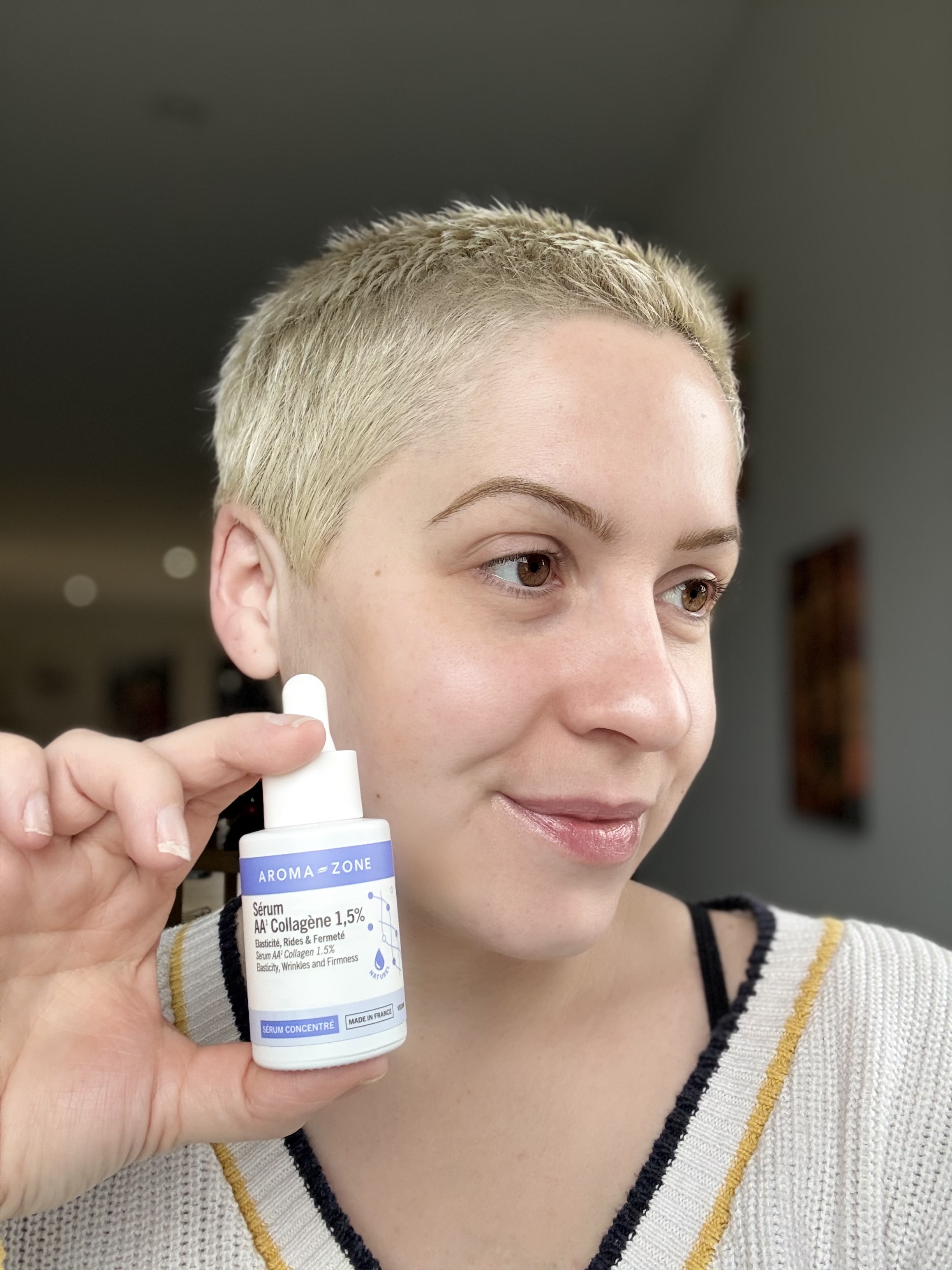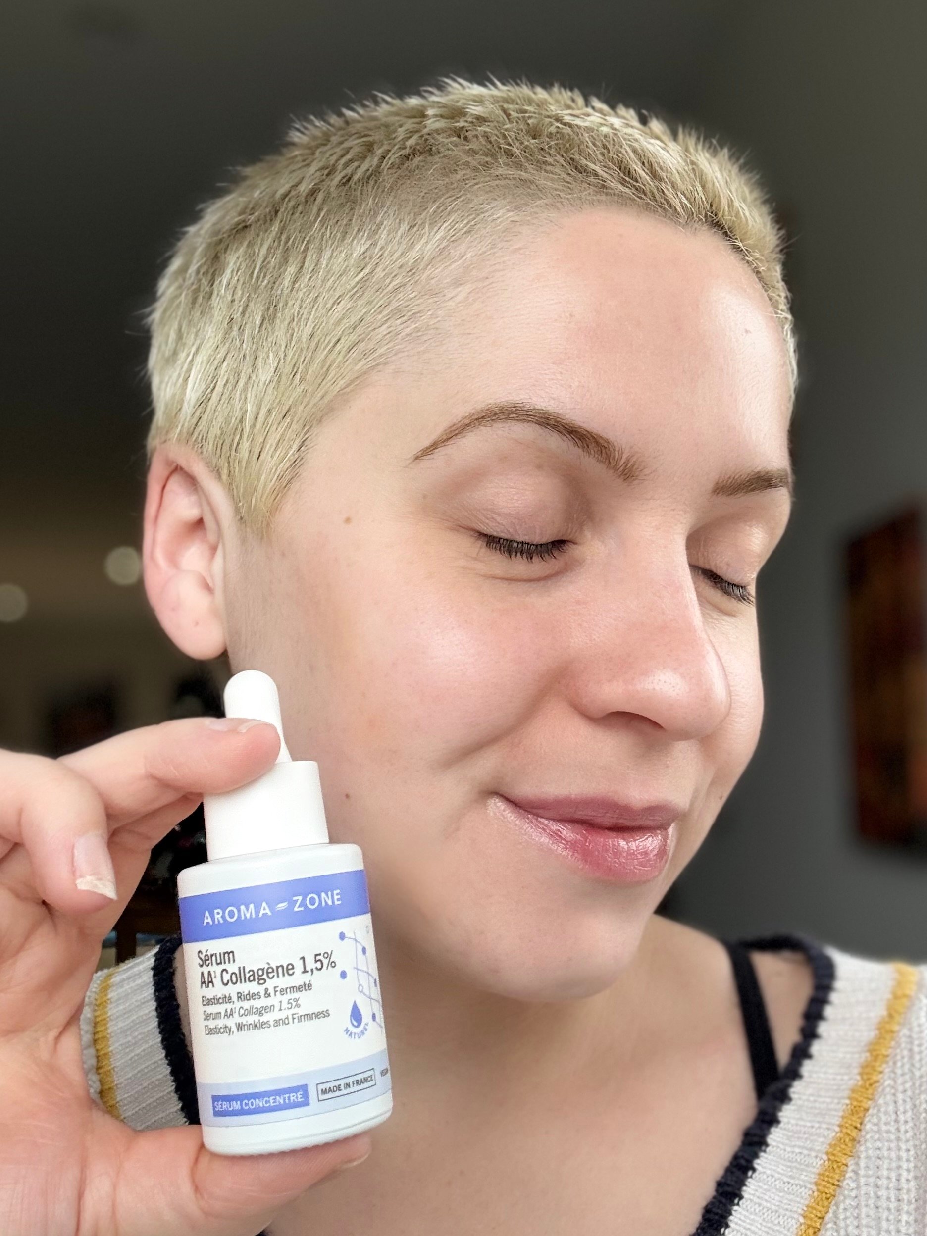 J’ai testé le Sérum AA Collagène 1,5 % pendant un mois, matin et soir. Ce que j’ai vraiment apprécié, c’est sa composition 100% d’origine naturelle. J’aime aussi beaucoup le système de flacon rechargeable : on achète le flacon une fois, puis on le remplit avec l’éco‑recharge. C’est économique et plus respectueux de l’environnement. La texture est très légère, non collante, sans odeur particulière, et la pipette rend l’application super simple. Côté résultats, j’ai remarqué une peau mieux hydratée, plus souple, avec un effet repulpé et lisse au toucher. Pour moi, le rapport qualité‑prix est vraiment bon.