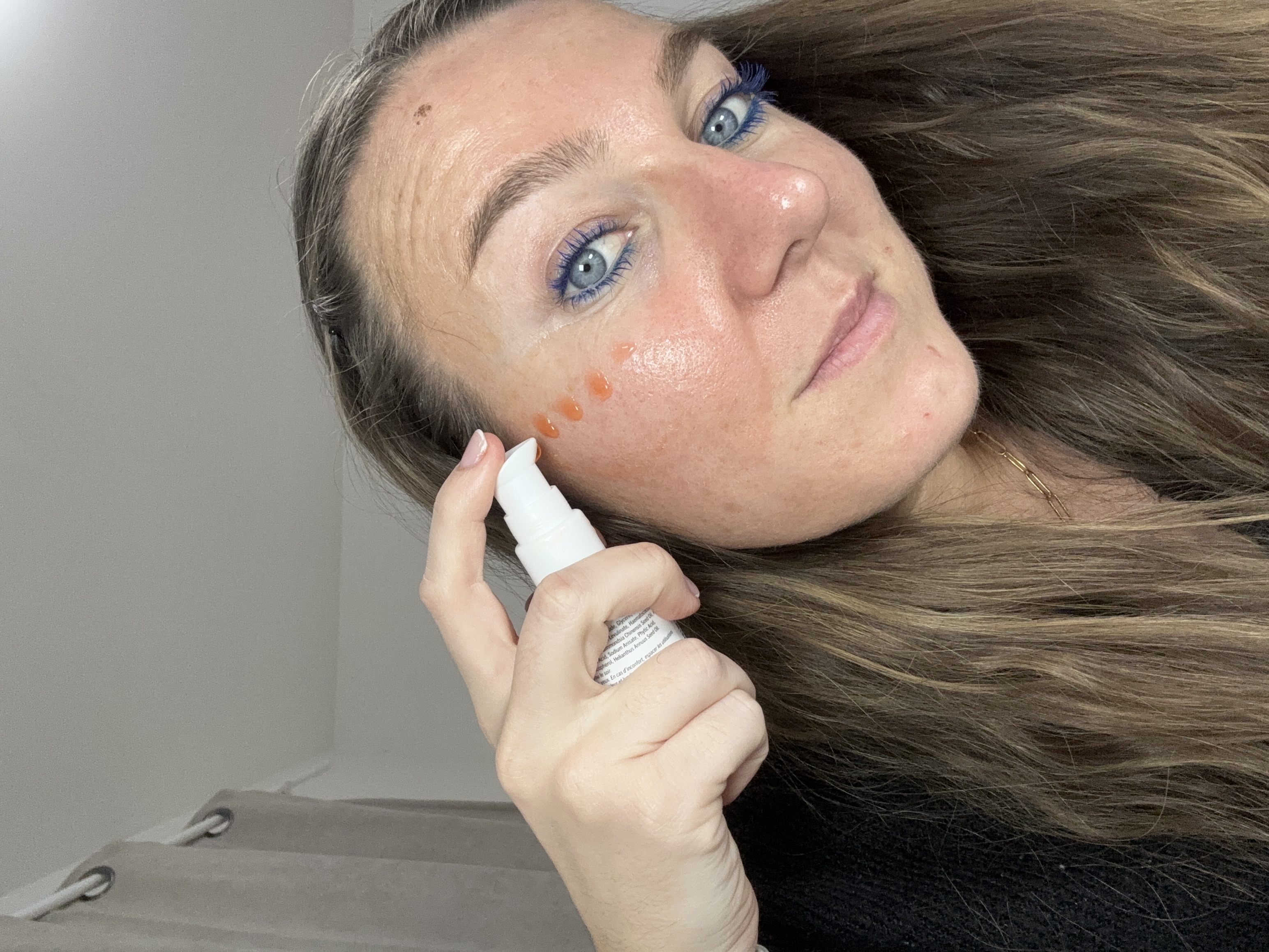 La couleur de ce sérum est très jolie, un mélange rouge/orange, après application sur la peau, l’embellie par sa brillance. Ne démange pas et s’applique facilement sur le visage, c’est une texture fluide. Une petite quantité sur les zones du visage suffisent 4/5 gouttes. Après plusieurs jours d’application je remarque que mes taches brunes diminuent, et sont moins prononcées.