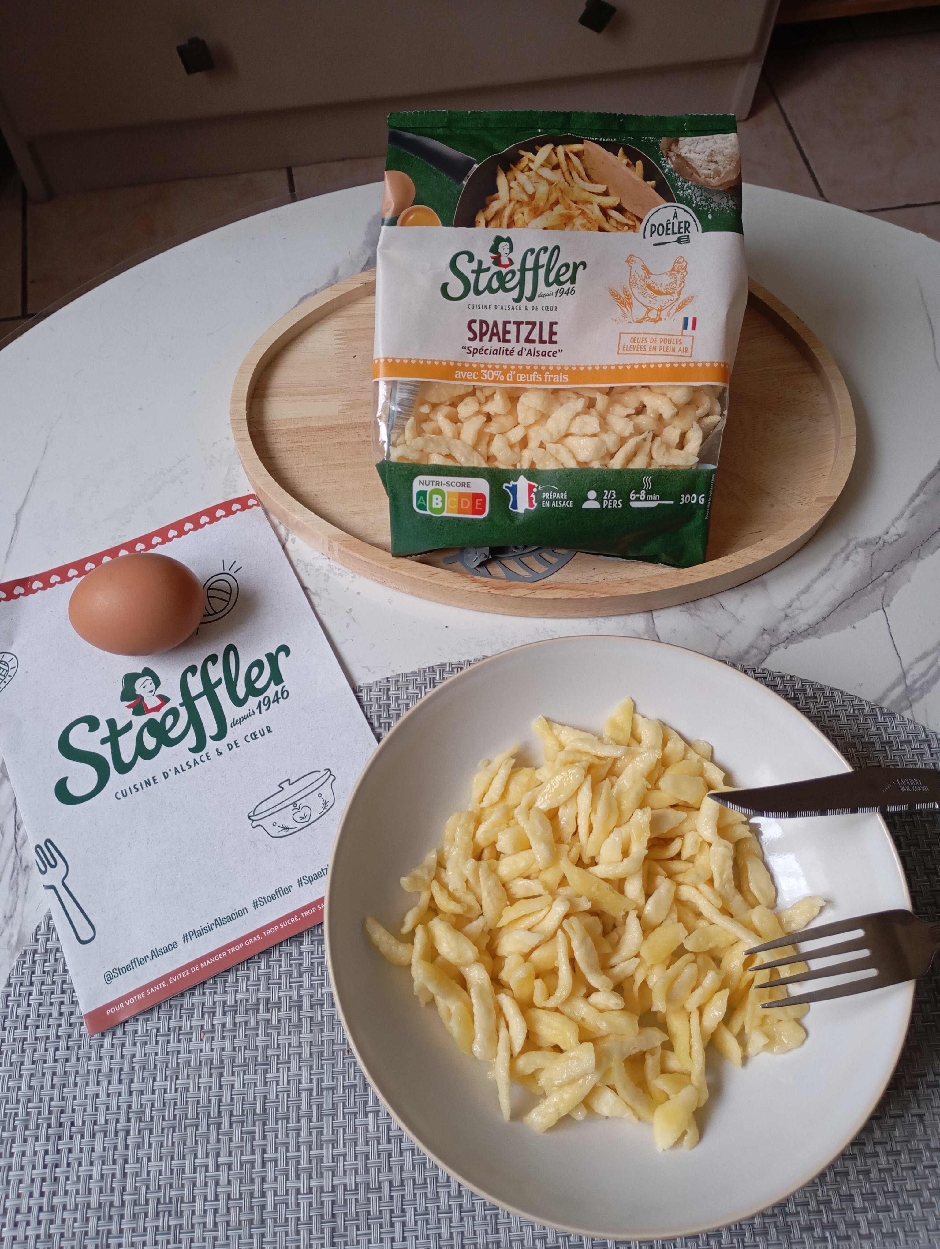 J’ai trouvé que les Spaetzle aux œufs frais Stoeffler étaient simples, rapides et faciles à cuisiner. Ils se prêtent à de nombreuses recettes et toute la famille a adoré. Ça change agréablement des pâtes ou du riz habituels.