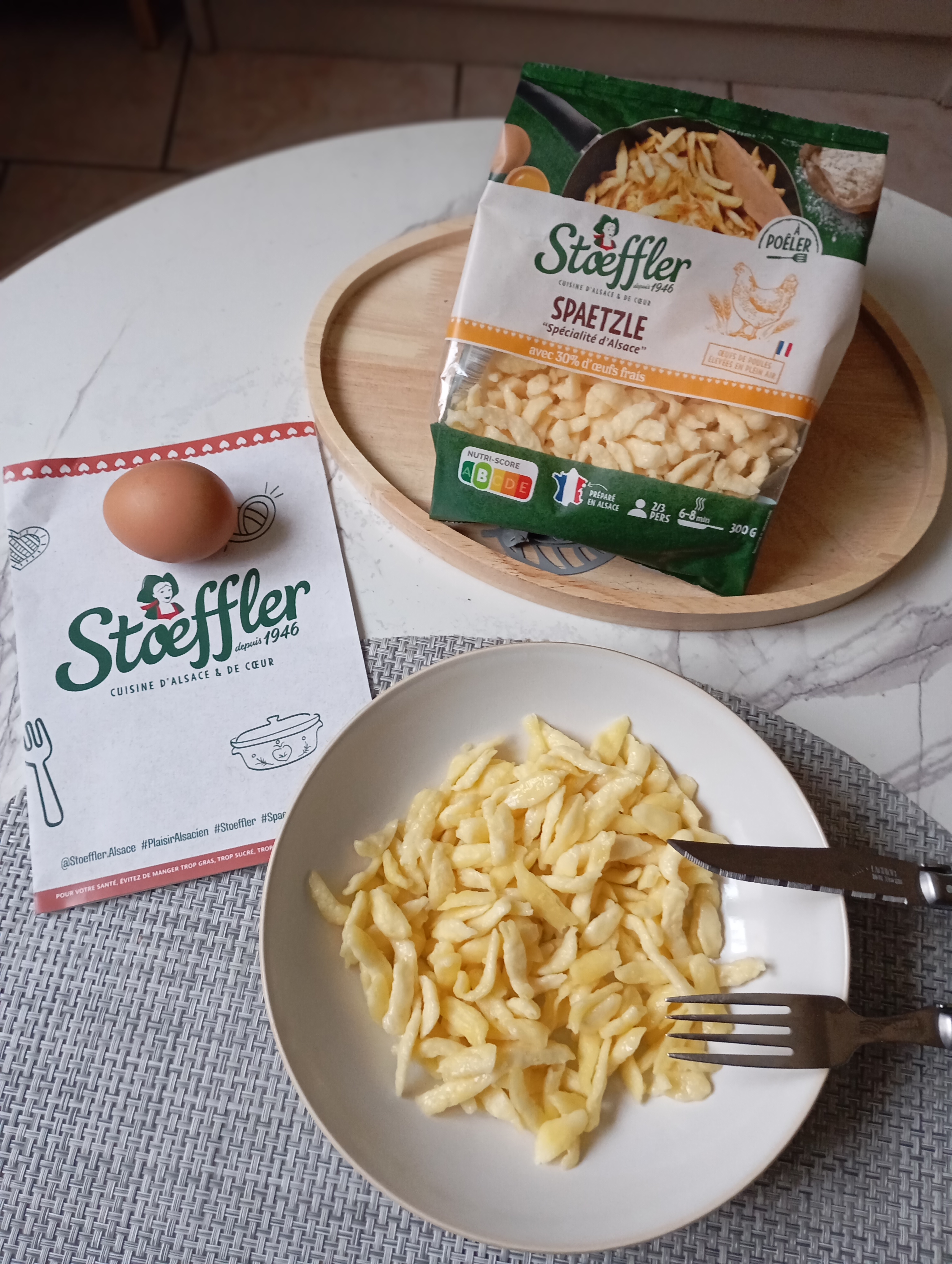 Ces Spaetzle de Stoeffler sont un délice en bouche, un petit goût de l'est de la France. Cela change des pâtes et du riz habituel. C'est un plat familial, jadore.