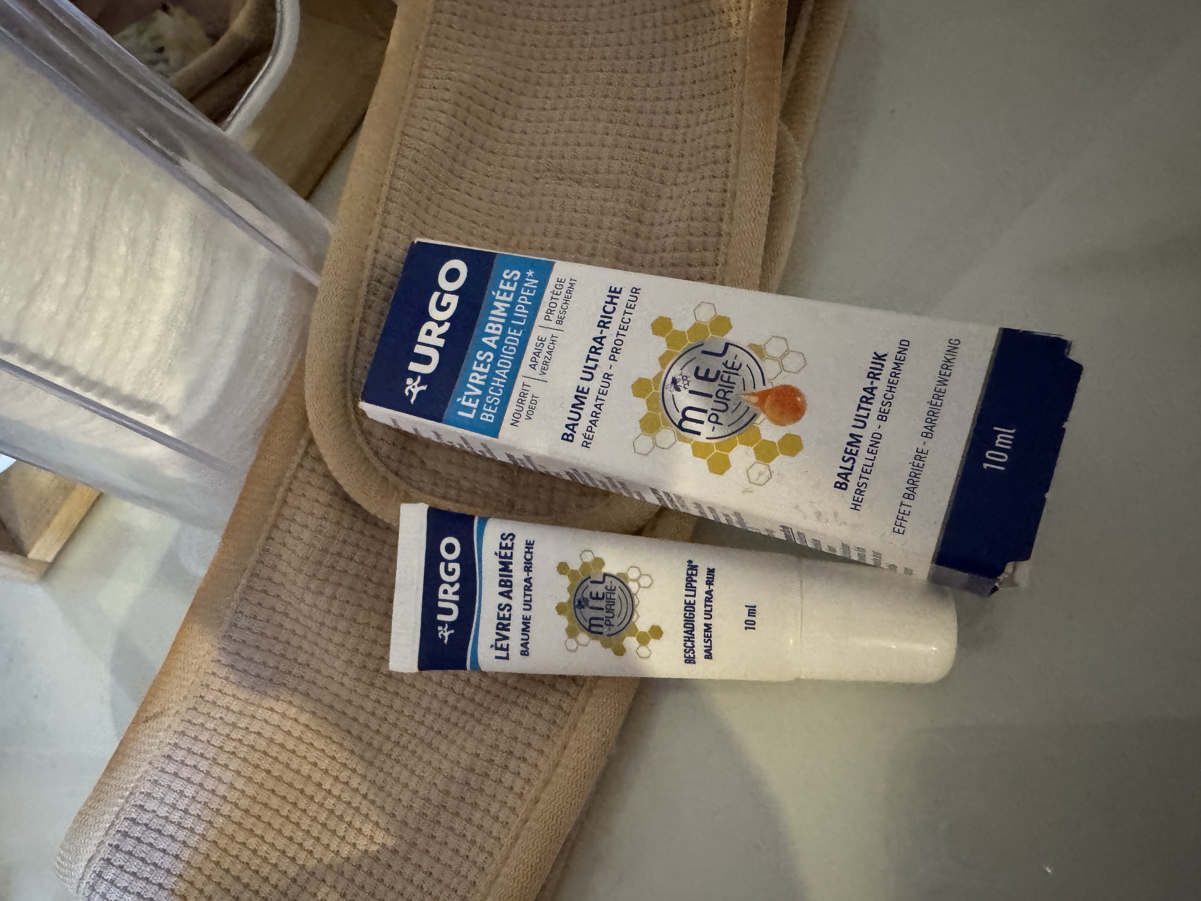 Urgo hydrate bien et répare les lèvres très agréable à porter goût léger de miel laisser sur les lèvres pendant plusieurs heures je re commande ce baume