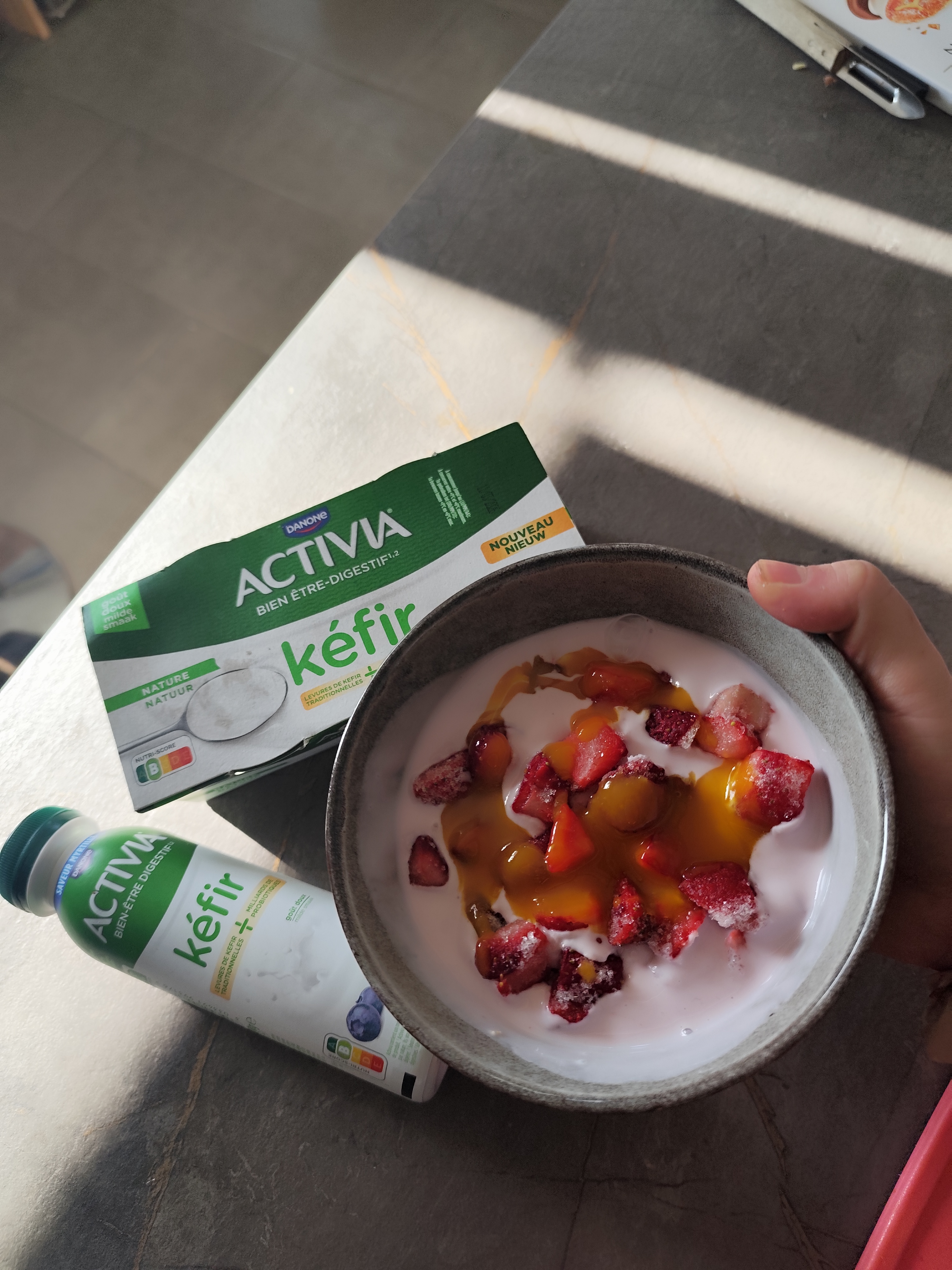 Je vous conseille fortement activia kéfir, super bon, plusieurs goûts. Celui à boire en une fois, je l'ai bu. Allez y, vraiment je vous le conseil. Après manger tous les midis j'en bois un