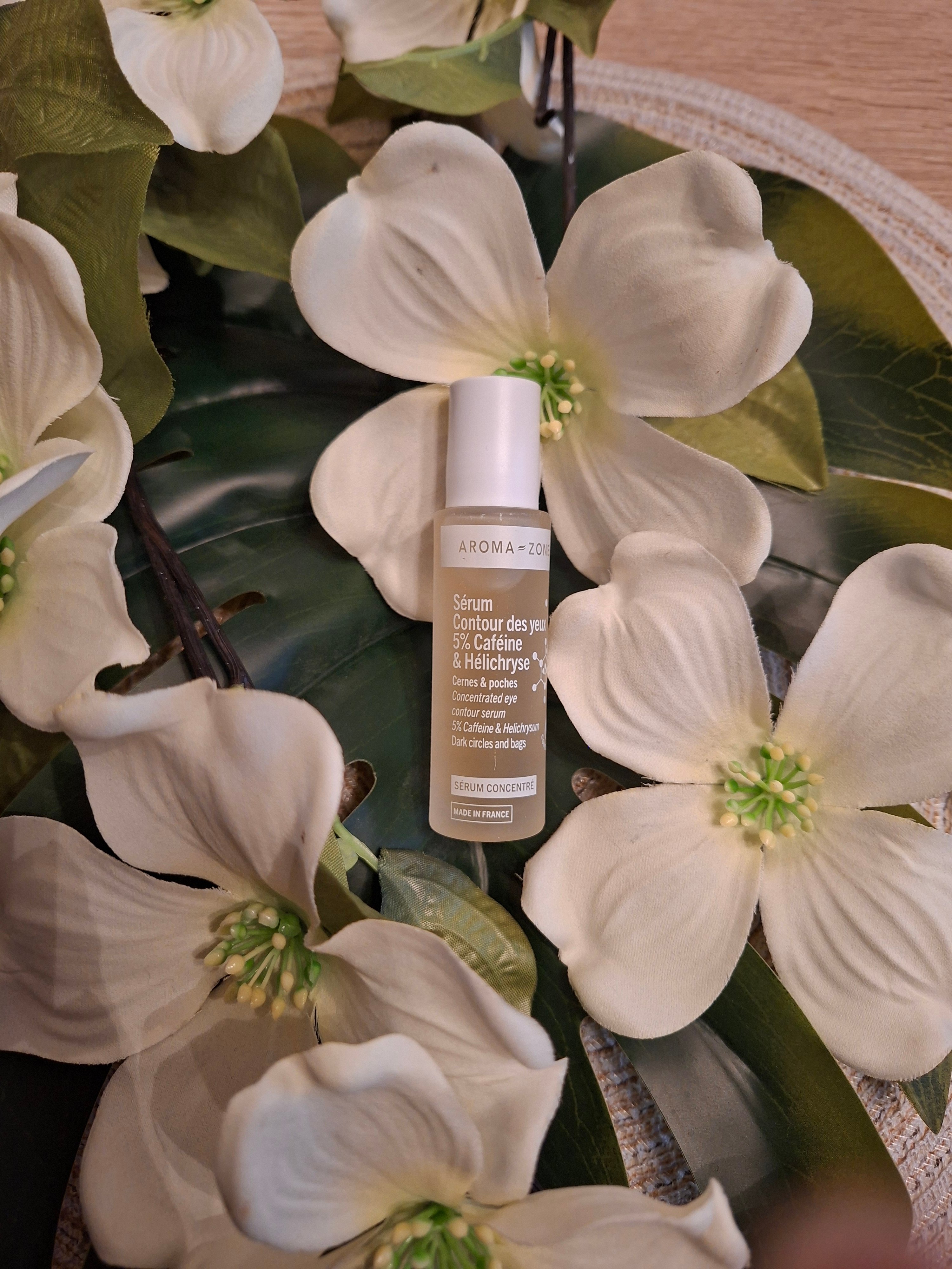 J aime beaucoup ce produit. Le sérum AROMA ZONE est génial pour un réveil optimal ! J adore cette sensation de fraîcheur sous les yeux . Le sérum ne colle pas ce qui est très agréable avec un parfum léger. Je continue le mettre chaque jour et c est adopté pour ma part . Il me faut l essayer encore plusieurs jours pour pouvoir dire si le résultat attendu est là mais je vois bien déjà une différence avec des yeux moins fatigué.
