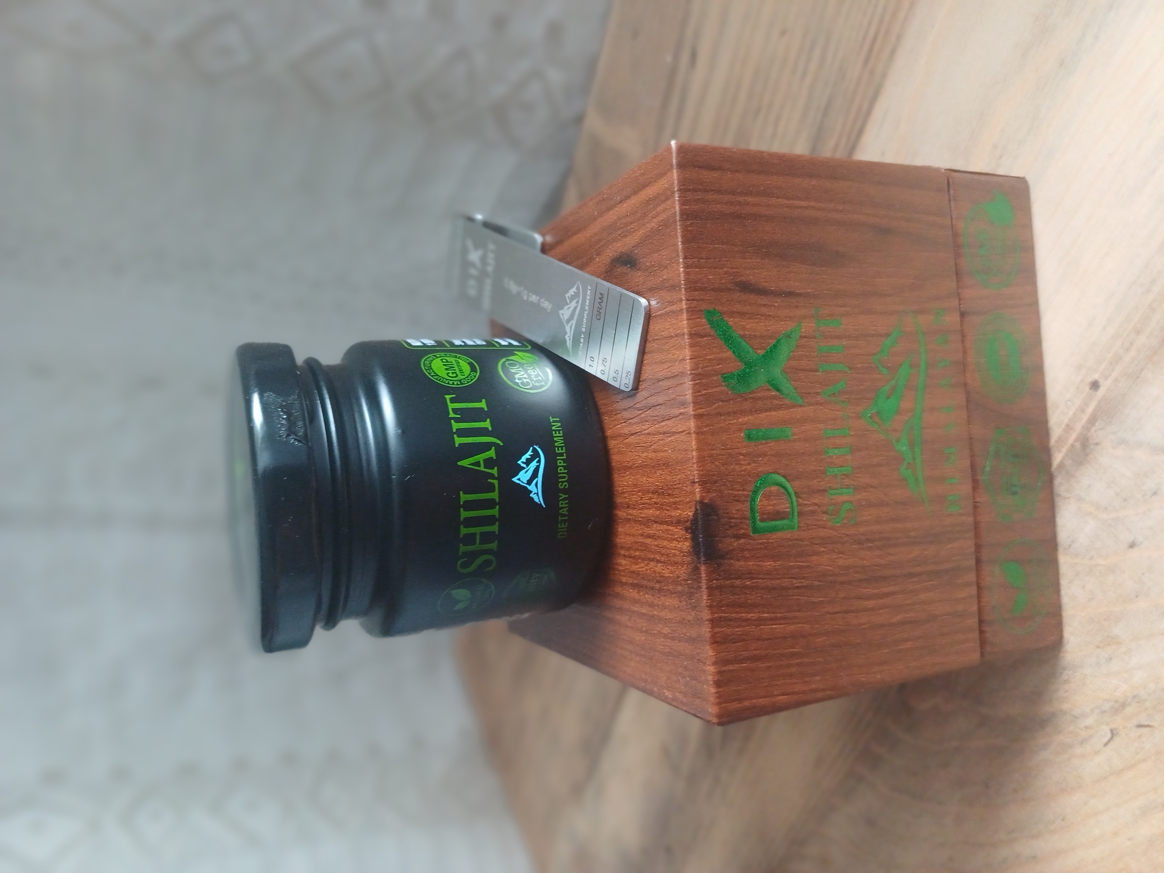 Cela fait à peu près trois semaines que j'utilise le Shilajit, que je dilue dans mon café du matin, ce qui lui confère un goût extraordinaire et très agréable. J'ai commencé à en ressentir les bienfaits, après seulement une dizaine de jours. Lors de mes activités sportives, mon endurance s'en trouve accrue, et je récupère beaucoup plus vite. Mon sommeil s'est grandement amélioré, ainsi que mon énergie. J'aime beaucoup la présentation du Shilajit, posé dans son joli coffret, et accompagné de sa cuillère en inox, fort pratique pour doser le produit comme il se doit. J'ai déjà repassé commande, car je suis devenue accro à ce précieux Shilajit 🖤💚