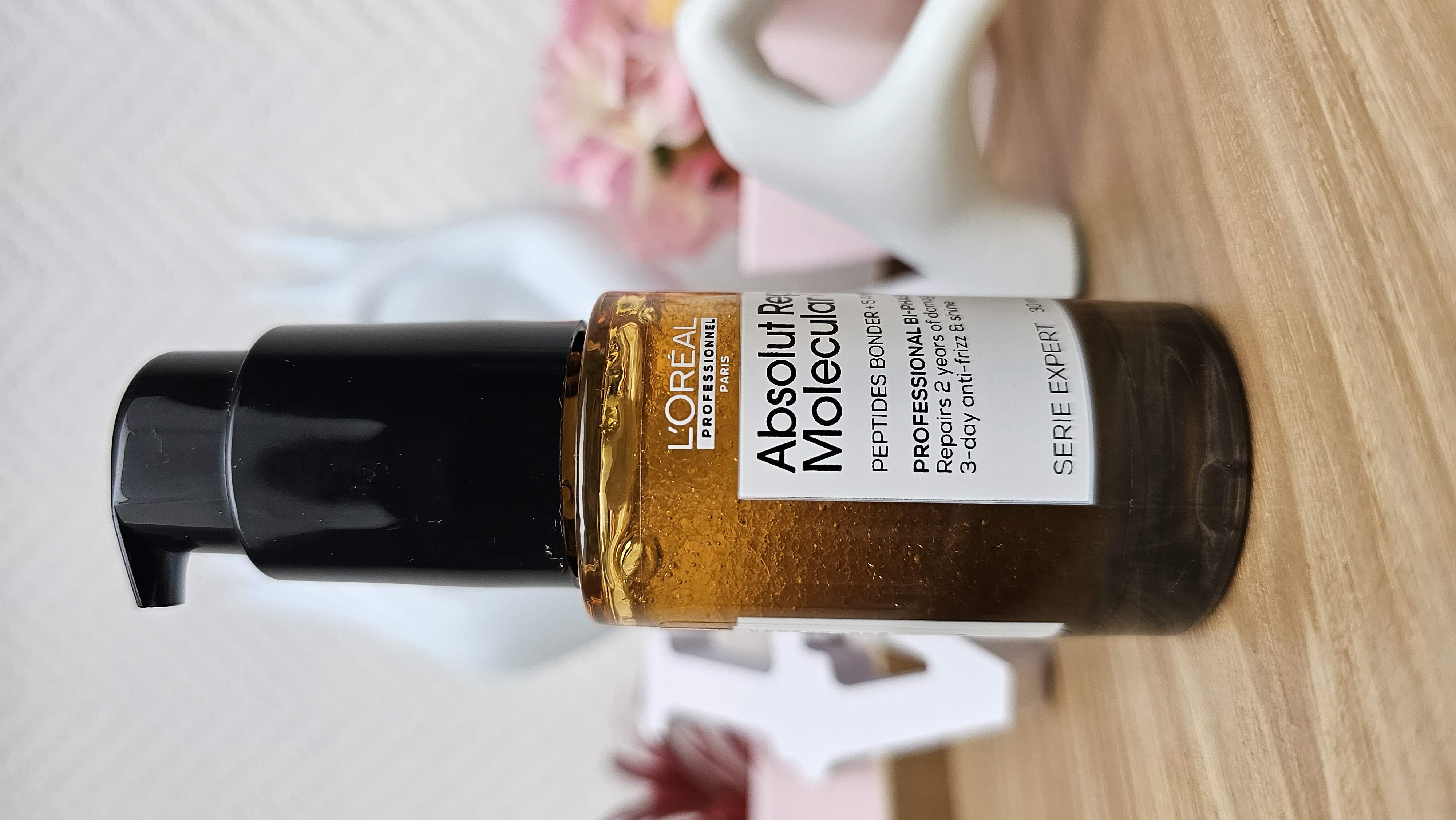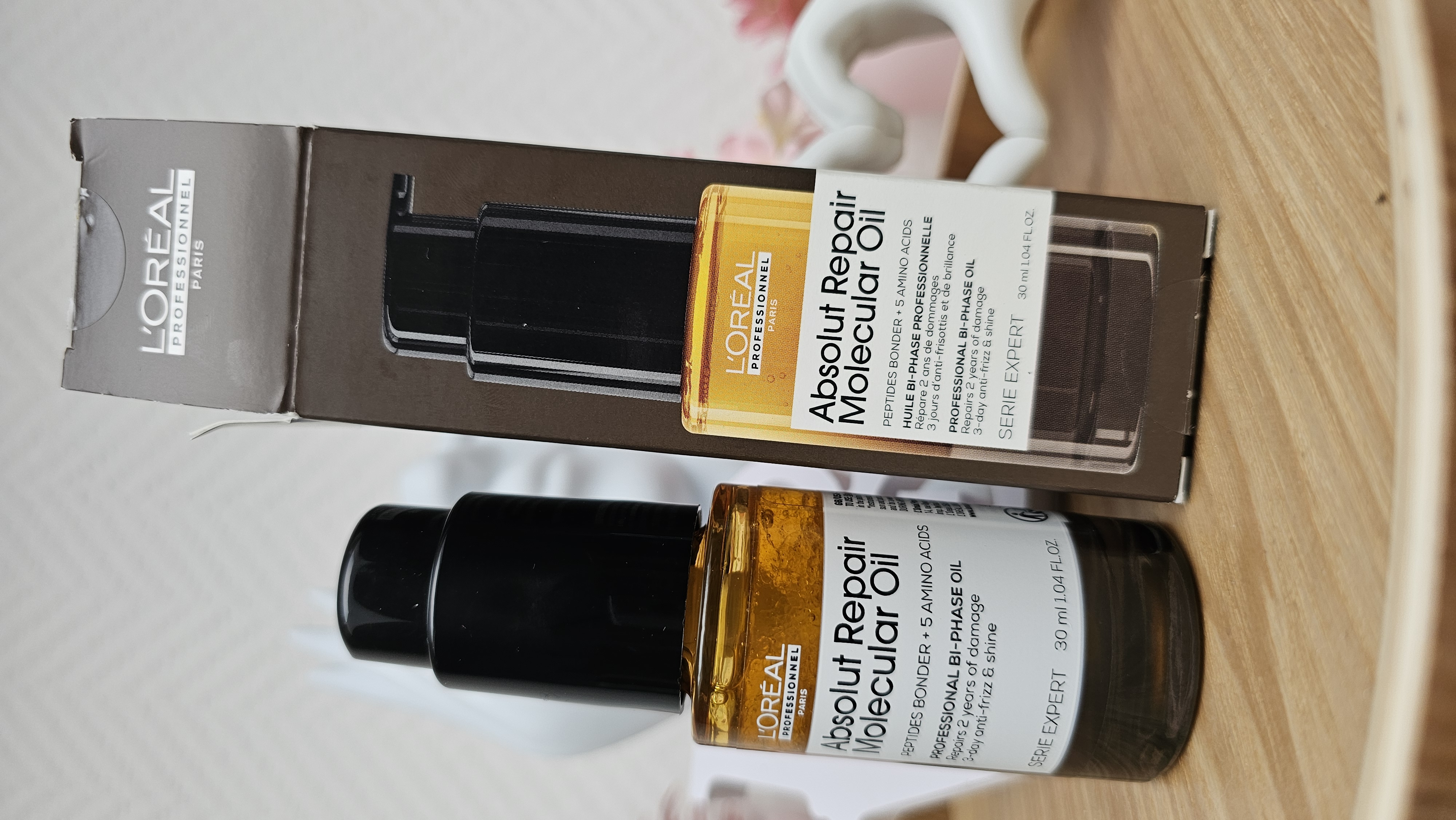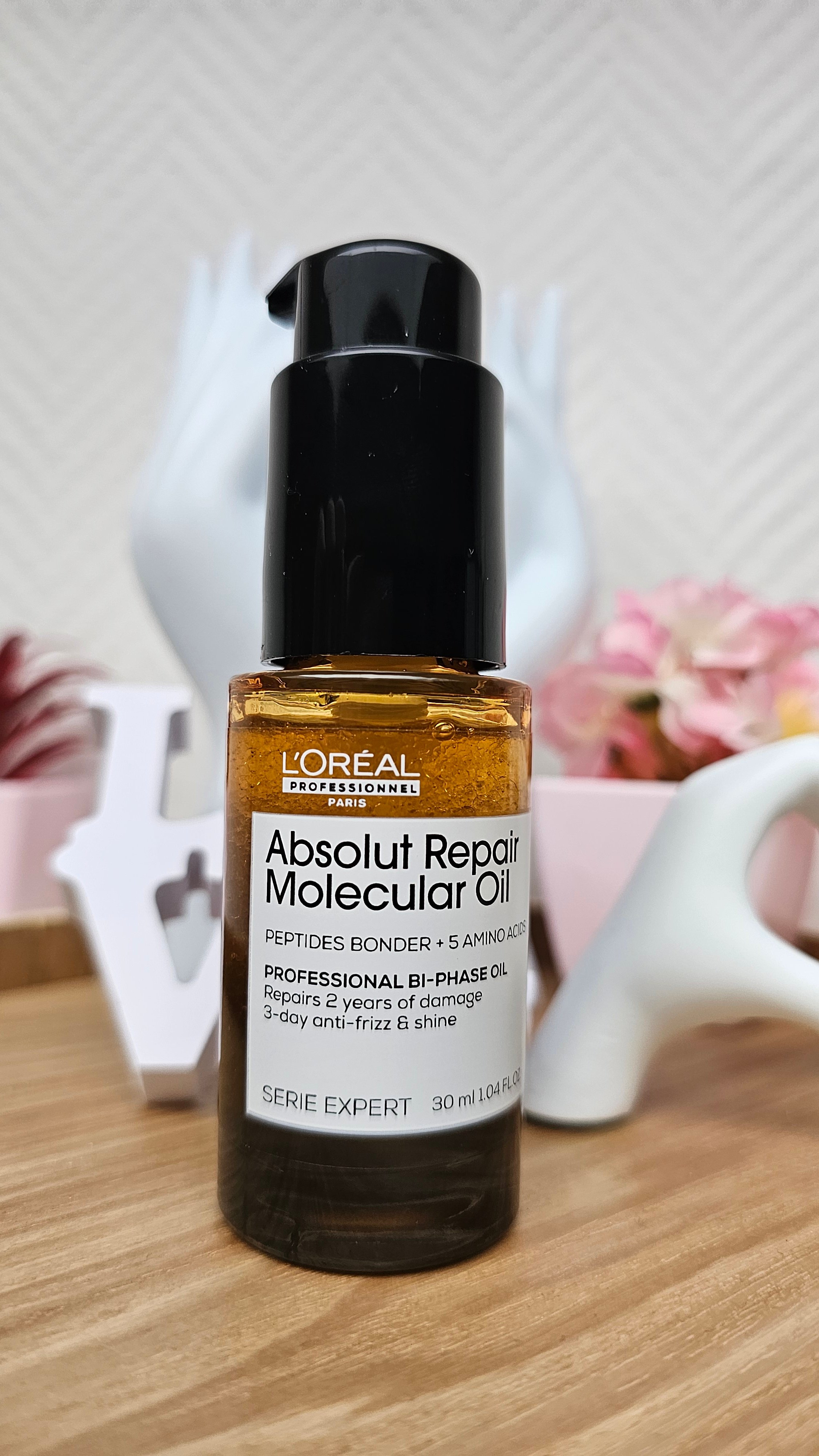 L'huile bi-phase absolut repair molecular de L'Oréal professionnel transforme vos cheveux, ils sont doux lisse et sentent incroyablement bon. La texture est vraiment différente des autres huiles que j'ai déjà utilisées, elle est beaucoup moins grasse. En ce qui concerne la réparation, je n'ai pas vu de résultat immédiat