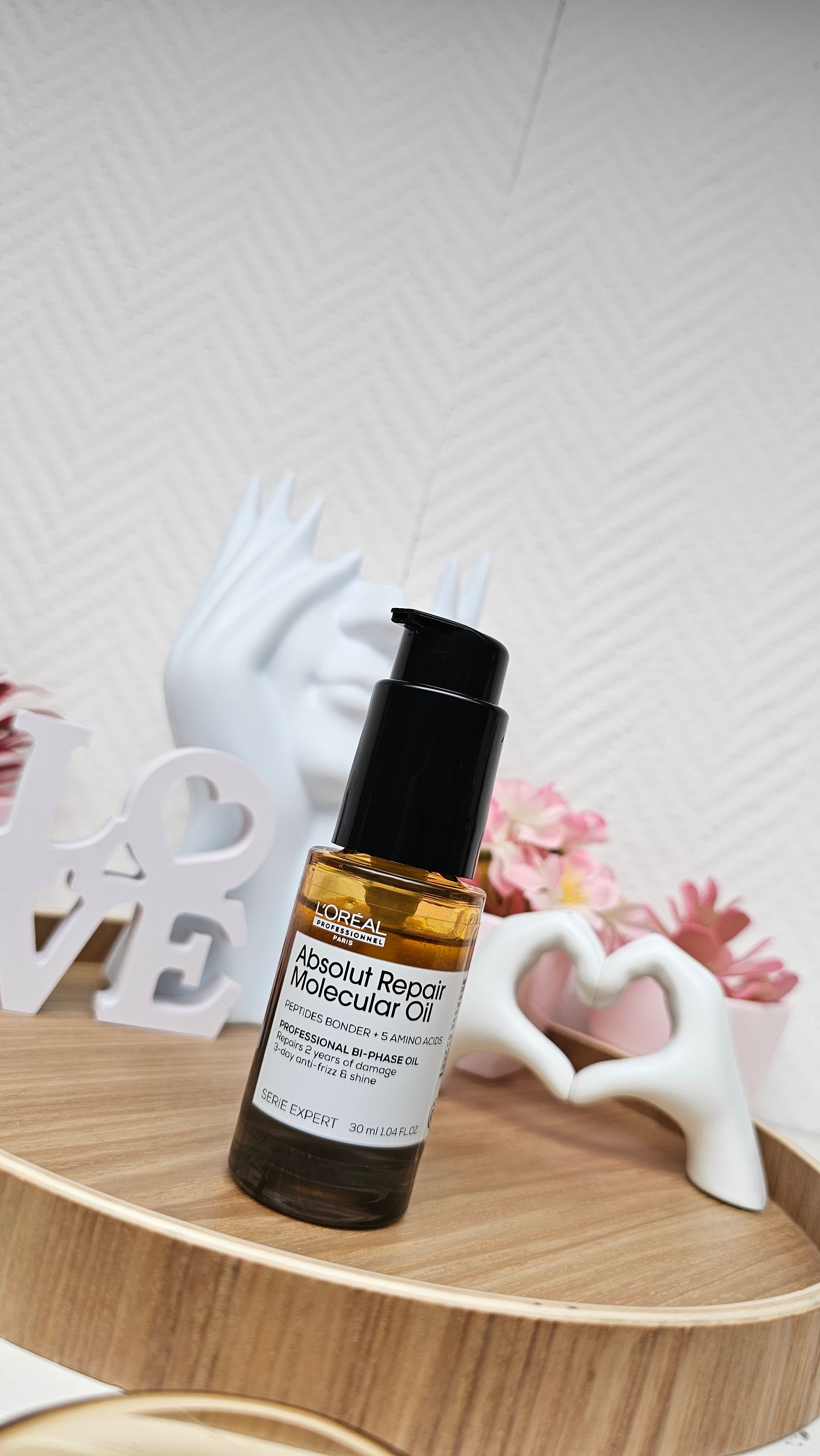Je suis tellement ravie de cette Huile Bi-phase Réparatrice Absolut Repair Molecular de chez L'Oréal professionnel ! Je l'ai complètement adopté dans mon rituel capillaire sur cheveux mouillés. Une fois mes cheveux secs c'est comme ci je sortais du coiffeur et l'avantage c'est que ce laisse pas les cheveux gras ! Je vous parle même pas de l'odeur agréable 😍 Je le recommande à tous, ma sœur l'a déjà adopté 🎀 Merci L'Oréal professionnel 🥰 Et chut mais j'en ai mis aussi à Monsieur 😅 Foncez les filles 🎀